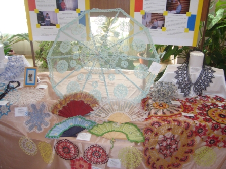 Еще немного в сторону – следующая экспозиция под названием «Мастера и мастерицы». Она вызвала особый интерес у исилькульских рукодельниц: здесь они не только могли познакомиться с изделиями калачинских умельцев, но и перенять опыт у мастерицы на все руки Людмилы Петровны Ильюшенко, тут же дававшей мастер-класс по вышивке бисером.