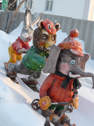 Знаете, откуда в Исилькуль придет Новый год? Со стороны Павловки! И сани Деда Мороза обязательно притормозят у дома 1Б по улице Чкалова – кому же не интересно посмотреть на собственное изваяние?! А тут рядом и Снегурка в полный рост, и Баба Яга в ступе, и зверье всякое, и домик для них выстроен.