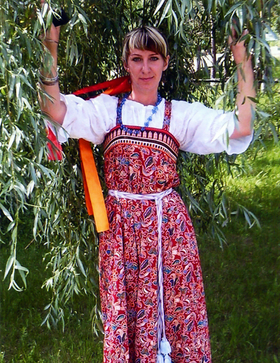 Марина Пузикова работает в Центре народной культуры "Святозар", этим летом она побывала в Саргатском районе - вожатой в лагере "Березовая роща": "Наша смена называлась "Наследники традиций". И вожатые, и дети ходили в национальных русских костюмах, ребятишки учились традиционным ремеслам - плетению из лозы и бересты, росписи по дереву, а мальчики изучали русские боевые искусства". Вообще, русский народный костюм для Марины практически обычная одежда, в нем она вместе с Центром "Святозар" много ездит по району и области, принимает участие в разнообразных мероприятиях.