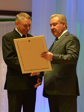 Диплом Правительства Омской области за 1 место по уборке урожая в южной лесостепной зоне Губернатор Омской области Л.К. Полежаев вручил главе Исилькульского муниципального района В.Г. Сусленко.