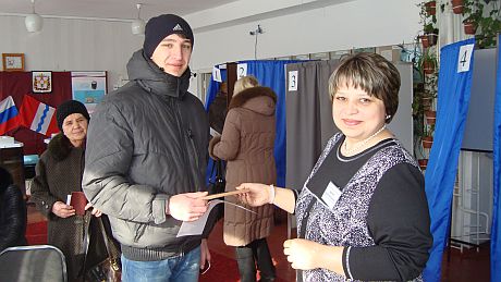 Примерно в это же время у регистрационных столиков выстроилась приличная очередь. По словам председателя избирательной комиссии А.В. Буякова, для села это типичная картина: в выходной день люди с утра сделали основные дела по хозяйству и потянулись на участок. Шли целыми семьями, с детьми, самым маленьким из которых родители доверяли выполнить почетную миссию – опустить бюллетень в урну.
