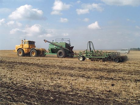 Хозяйство это молодое, создано в Первотаровке как дочернее предприятие Сибирской опытной станции всего пять лет назад. Для начала кое-какую старую технику выкупили у обанкротившегося первотаровского предшественника. К уборочным работам приобрели семь почти новых комбайнов «Енисей», в прошлом году пополнили комбайновый парк пятью новыми «Векторами». Обновили все сеялки – чтобы беспрепятственно вместе с семенами вносить в почву удобрения. А покупка этого года – два посевных комплекса «Кузбасс-12,2», посевной комплекс «Томь» и три канадских высокопроизводительных трактора «Бюллер».