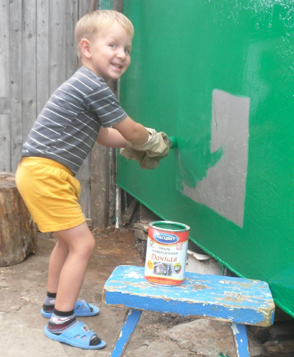 Мой племянник Сергей очень добрый мальчик, хороший помощник и очень любит свою младшую сестренку – мою доченьку Евочку. На момент съемки Еве было 6 месяцев, а Сереже 10 лет. Как обычно, я пошла на улицу по хозяйственным делам, а Сережу попросила протереть полы и присмотреть за Евочкой. По словам Сережи, Ева не хотела играть, просилась к нему на руки, и ему ничего не оставалось делать, как совместить два в одном: он посадил Еву на мокрую швабру и вместе с ней мыл пол. Когда я это увидела, я очень рассердилась. Но, заметив восторженный взгляд Евочки, просто рассмеялась и попросила их не шевелиться, чтобы запечатлеть на память этот момент.
