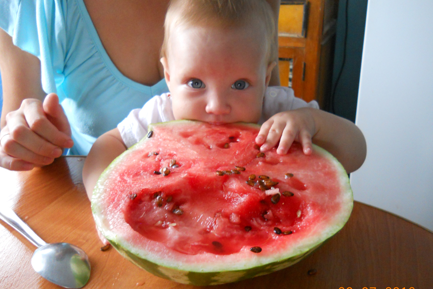 Помощь ведь может быть абсолютно разной. Наша доченька София помогает мне (маме) кушать арбузик! "Вдруг мама не осилит)))" (на фото Софии почти 8 месяцев, сейчас уже 9). |