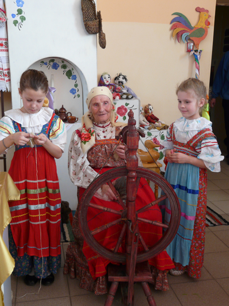 83-летняя жительница поселка Лесной, ветеран педагогического труда Антонина Афанасьевна Полькина охотно обучает участниц ансамбля «Славницы» Центра русской традиционной культуры «Святозар» основам рукоделия, унаследованным от предыдущих поколений. |