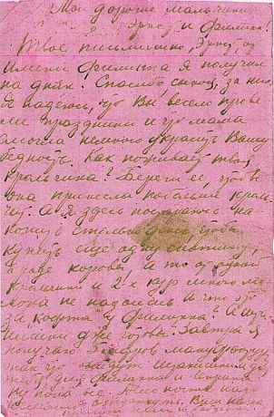 Вот текст одного из писем: «Мои дорогие мальчики Эрнст и Филипп! Твое письмишко, Эрнст, от имени Филиппа я получил на днях. Спасибо, сынок, за него. Я надеюсь, что вы весело провели праздники, и что мама смогла немного украсить вашу бедность. Как поживает твоя крольчиха? Береги ее, чтобы она принесла побольше крольчат. А я здесь постараюсь накопить столько денег, чтобы купить еще одну животину, вроде коровы, а то от одной крольчихи и двух кур много молока не надоишь. А что это за «кофта» у Филиппа? И штанишки уже готовы. Завтра я получаю 5 метров мануфактуры, так что выйдут штанишки и для тебя, для Филиппа и Генриха. Ну пока все. Дело ночное, надо немного отдохнуть. Ваш папа. Привет всем и бабушке».