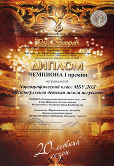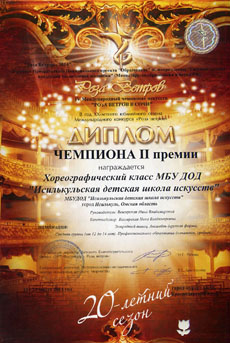 Жюри, в состав которого входили Заслуженные артисты и Заслуженные деятели культуры России, преподаватели вузов, мастера режиссуры и хореографии, оценивало технику исполнения, балетмейстерскую работу, артистизм, эмоциональность исполнения и выставляло оценки сразу после каждого выступления. Четырнадцать ребят из младшей группы (до 8 лет) выступали в номинации «Народный танец» и по результатам оценок за два танца завоевали Диплом чемпиона I степени. Восемь девушек старшей группы (13-15 лет) в номинации «Эстрадный танец» получили Диплом чемпиона II степени. Кроме того, хореографический класс Исилькульской деской школы искусств получил приглашение принять участие в ХХ Международном конкурсе детского и юношеского творчества «Роза ветров-2014» в Москве осенью этого года.